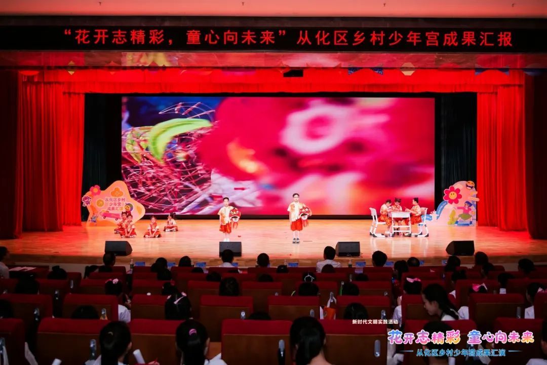 5月17日下午,从化区乡村少年宫成果汇演在广州华夏职业学院图书馆举办。本次汇演以“花开志精彩,童心向未来” 为主题,集中展示了一年来从化区乡村少年宫学员成长成果。