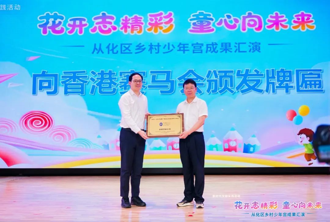 活动现场,乡村少年宫为香港赛马会颁发牌匾,感谢其在从化乡村美育公益事业中的突出贡献。